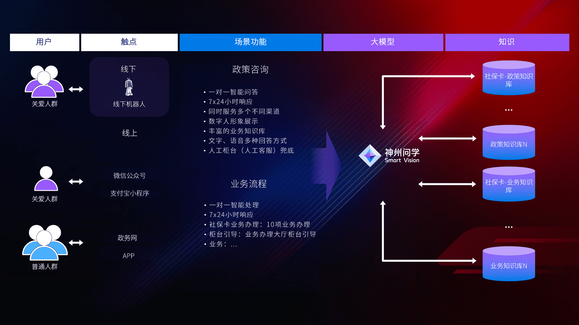 在服务大厅部署客服机器人,,,在线上应用和小程序配置客服数字人,,,724小时为群众解答常规问题,,,客服机器人无法处理的,,,,转现场人工处理。。。。